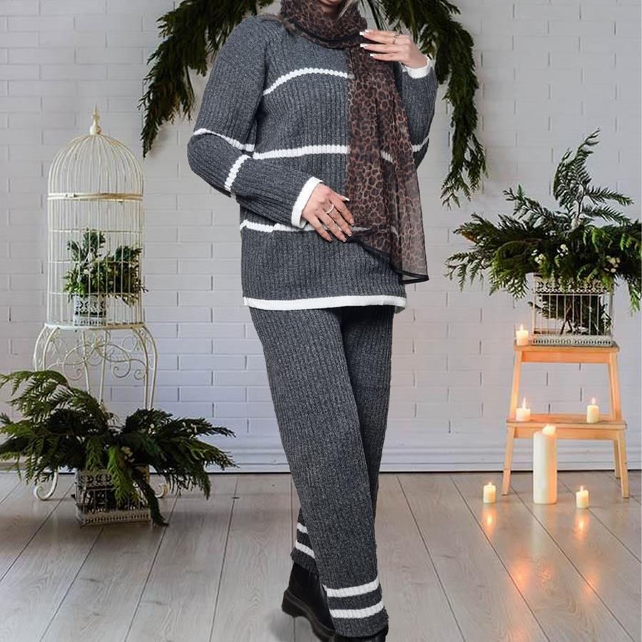 ست بلوز و شلوار بافت زنانه Sita_Charcoal مدل 3854